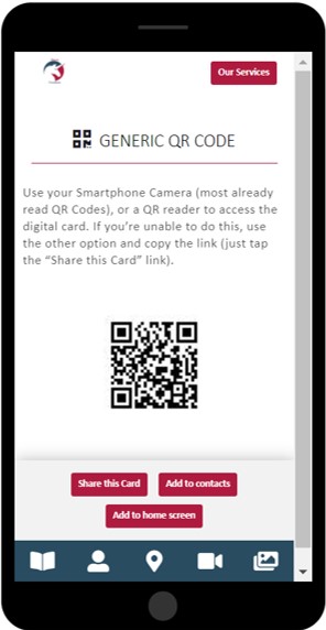 Use your Smartphone Camera (most already read QR Codes), or a QR reader to access the digital card. If you’re unable to do this, use the other option and copy the link (just tap the “Share this Card” link).