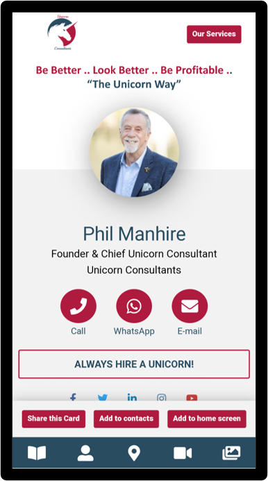 With Ondigicard, you are also able to send your digital business card to someone via an SMS text message, email, WhatsApp or social media.