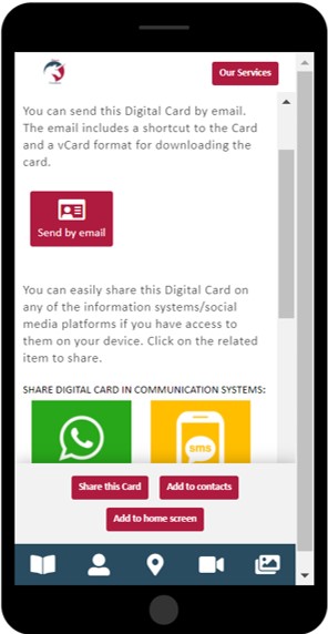 You can easily share this Digital Card on any of the information systems/social media platforms if you have access to them on your device. Click on the related item to share.